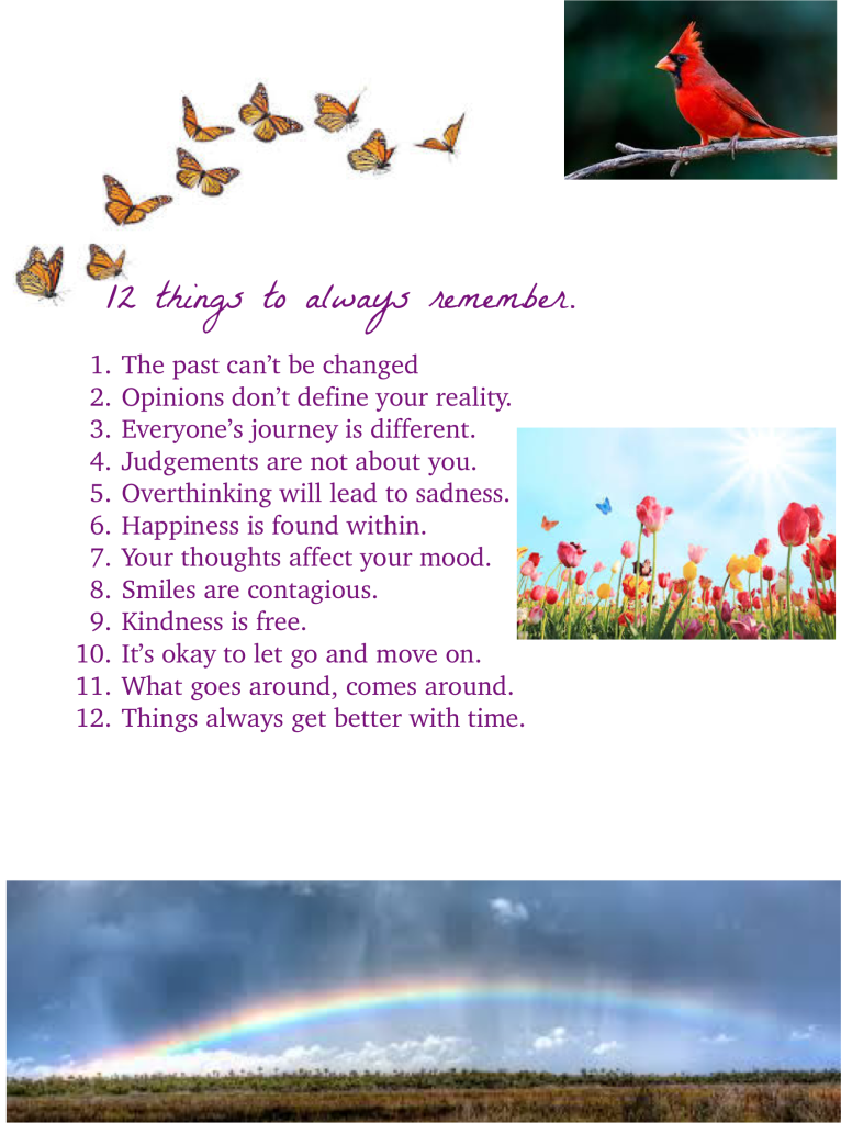 My ‘I am making progress because’ list is something I add to whenever I feel the need to remind myself of the progress of my recovery. Another benefit to keeping track is that you can give it to your professional support team easily. This lets them see what you are making progress in. I myself, put each time I add to it a different color so I can see the growth.
